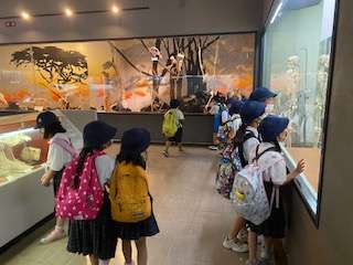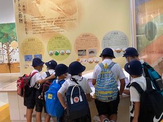 いろんな生き物の展示物があり、珍しそうに見入っていました。