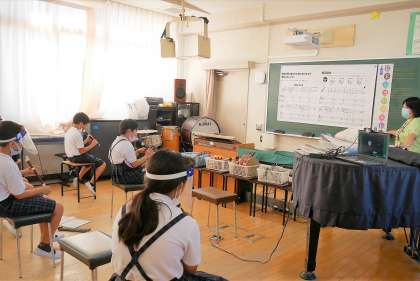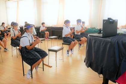 五年生がリコーダーで演奏する、作曲:フォスター、作詞:武井君子の『静かに眠れ』です。