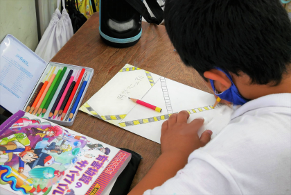 子どもたちが防災知識を調べて、オリジナルのマニュアルを作る学習をしていました。