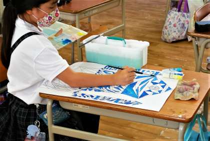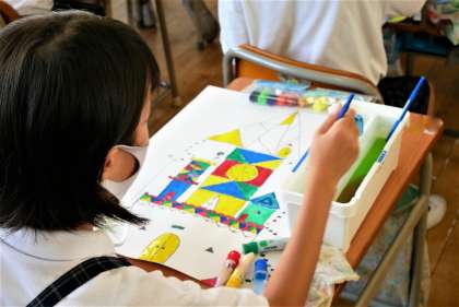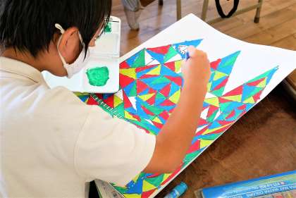 色塗りの際には、寒色系でまとめたり、明るい色をたくさん使っていたりと、絵だけでなく、色使いにも個性が出ていました。