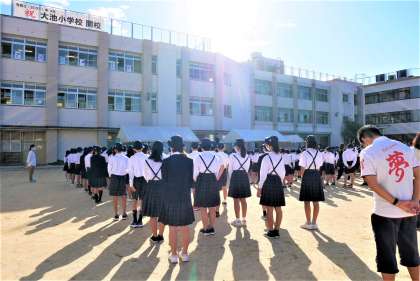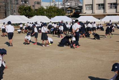 朝会の後、運動会に向け、全校児童で運動場の石ころ拾いをしました。
