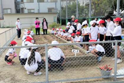 先生の注意をしっかり聞いてから、「芋掘り」開始です。