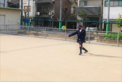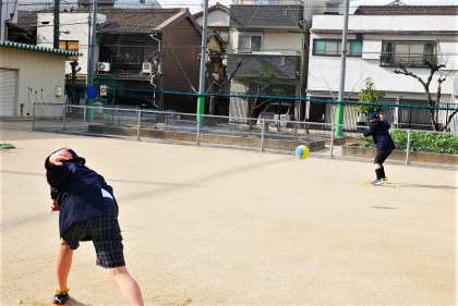ドッヂボール、鬼ごっこ、バレーボールと、いろいろな遊び方がありますが、子どもたちの中には、教室にあるボールを使って、「野球」をしている子どももいました。