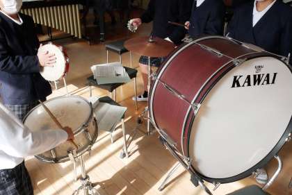 五年生がそれぞれの担当する楽器に別れて練習をしています。