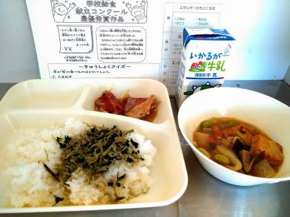 今日の献立は、中央区開平小学校給食委員会の児童の作品で、昨年度の学校給食献立コンクール最優秀賞献立です。