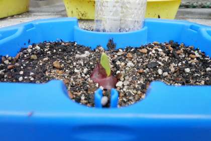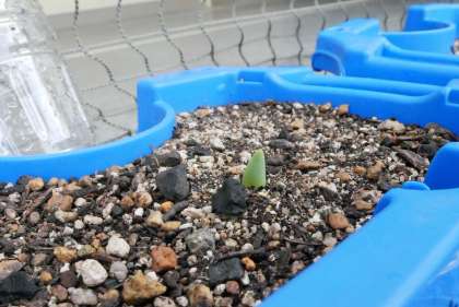 一年生が植えたチューリップの球根から「め」が出はじめました。