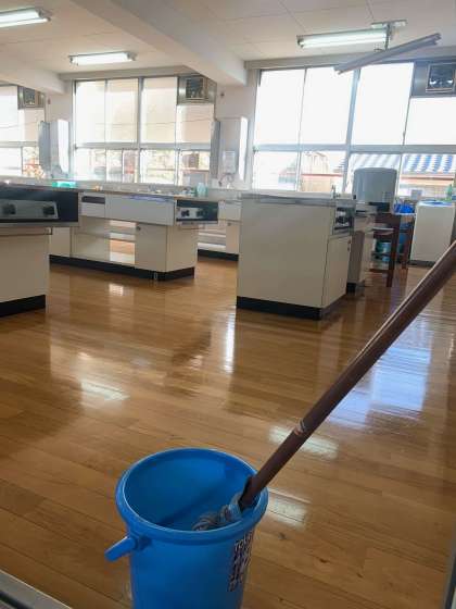 実習教室の大掃除 公開日 2021/12/27 更新日 2021/12/27 お知らせ 冬休みに入り、しばらくの間使われなくなる「家庭科室」と「理科室」の掃除が行われました。 ワックスがけが終わり、ツヤを取り戻したフローリングが、日光をまぶしく照り返しています。 いいね(0)