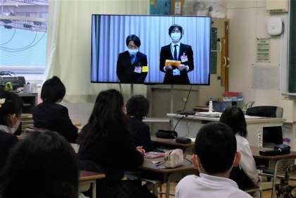 コロナ禍の状況を鑑み、テレビ放送で始業式を行いました。