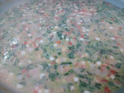ぞう煮は、「雑煮」と書くように、もちを主に、様々な具材を入れた汁ものです。地方や各家庭によって入れる具材や味つけなどに特色があります。給食では、金時にんじんを使用した関西風の白みそ仕立てのぞう煮です。