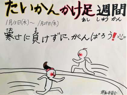 「寒さに負けないように、積極的に外へ出て体を動かそう!」という週間目標で、健康維持を目標に、運動委員会が主導しています。