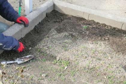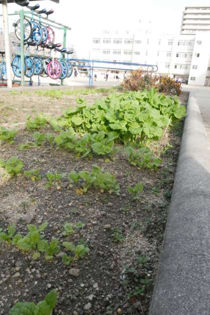 もう片方の花壇には、以前紹介したマツバギクやマリーゴールドのような花を植えていて、今は、春に向けて「アブラナ」が植えられています。