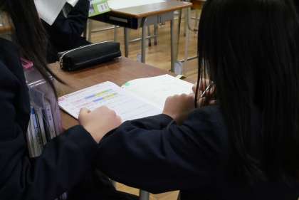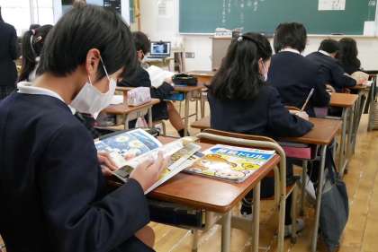 自主勉強のほか、図書室で借りた本を読んだり、あわてて宿題をやっている子も…。
