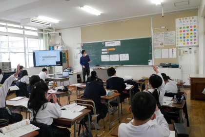 「もとになる数の何倍の長さになるか」の求め方について学習していました。