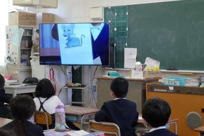 集会委員の子どもたちが、放送で児童集会を行いました。