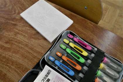 天板にあたる部分に絵を描いて、彫刻刀で掘った後、色を付けます。