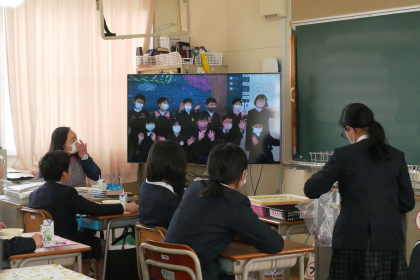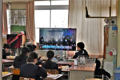 今日から11日まで、給食の時間に、事前に収録した6年生へのお祝いメッセージビデオが放送されます。