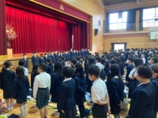 児童会の代表が、歓迎の言葉を述べ、全校児童が拍手で迎えました。