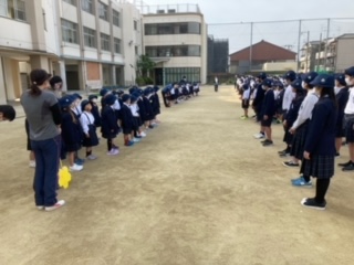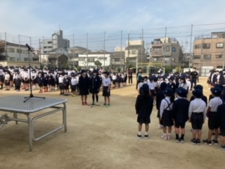 児童会の代表児童3名が、「小学校では、色々なことを勉強しますよ」「給食おいしいですよ」「困った時は何でも聞いてください」などと歓迎の挨拶を行い、全校児童が拍手で歓迎の気持ちを表しました。