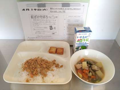 給食調理員さんがふわっとしたとっても美味しい紅ざけそぼろに仕上げてくれました。どの学級も、そぼろの残食はなく、米飯の残りもほとんどありませんでした。