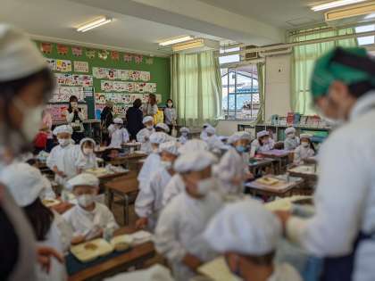 着替え、配膳、静かに食べる様子を見ていただきました。少し緊張していたようですが、どの児童にも嬉しそうな表情が見られました。