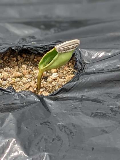 ヒマワリが芽を出していました。こんなかわいらしい芽が、あの大きなヒマワリの花を咲かせるんですね。