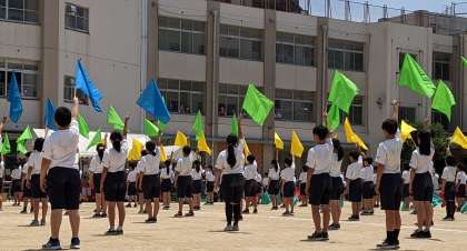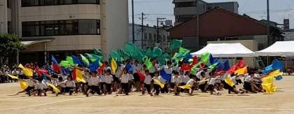 5、6年生団体演技その2 公開日 2022/05/30 更新日 2022/05/30 お知らせ 組体操に続き、音楽に合わせて旗を振りながらの演技です。「ビシッ」「ビシッ」と旗を振る音が揃っていてとても格好良かったです! 運動会の最後を立派に締めくくってくれました。 いいね(0)