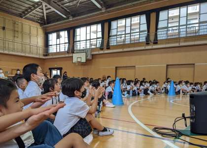 6月26日の土曜授業は、芸術鑑賞会でした。今回は、世界で活躍するジャグラー「ちゃんへん」さんのジャグリングを観ました。目の前で繰り広げられる様々なジャグリングは、まるで手品のようでした。特に低学年の生徒は不思議そうな顔でじーっと見つめていたのが印象的でした。