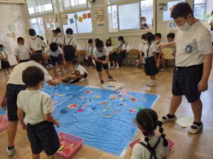 大池フェスティバル 公開日 2022/07/06 更新日 2022/07/06 お知らせ 1年生の教室です。 案内をする児童、ルールを説明する児童、タイムキーパーなど。。。それぞれの持ち場で一生懸命に「仕事」をしていました。 高学年の児童も本気で楽しんでいました! そして、帰り際に「ありがとう」と1年生に声をかけているお兄さんお姉さんの姿が微笑ましかったです。 いいね(0)