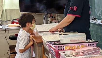 また、1年生にとっては初めての通知表が渡されました。「何それ〜?」という声もきこえるなか、「○○をよく頑張ったね」という言葉と共に渡された通知表を嬉しそうにカバンに直す姿は、とても微笑ましいものでした。