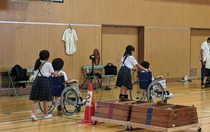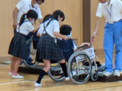 車椅子体験学習その3 公開日 2022/09/02 更新日 2022/09/02 お知らせ 次に、介助体験です。 押す人は、【思いやりと優しさを持って】との説明通り「曲がりまーす」「あ、ごめん」などと声をかけながら丁寧に押していたのが印象的でした。乗る人の不安な気持ちを感じながら押しているようでした。 いいね(0)