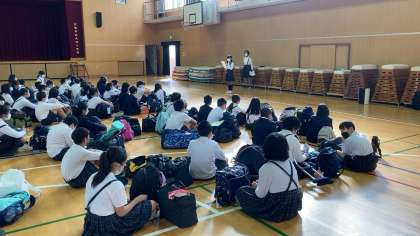 代表児童が、「皆で協力して楽しい自然教室にしましょう」と挨拶を行いました。