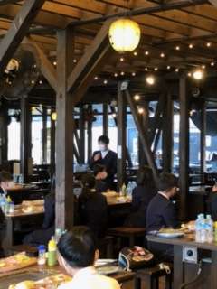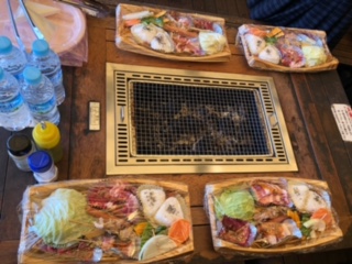 海風が気持ちよく、開放的な席で、バーベキュー開始です!醤油の発祥の地は和歌山県なんだとか。雑学担当の子からの、ありがた〜い雑学を聞き、和歌山県に感謝しながら、いただきまーす!