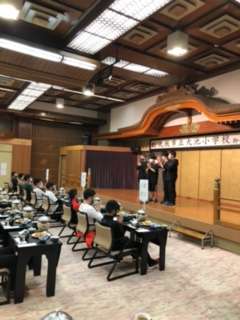 6年 修学旅行 19 公開日 2022/11/17 更新日 2022/11/17 お知らせ 夕食 大歓迎の食事会場で、夕食です!恒例の雑学をいただき、一同「へえ〜!」「お〜!」と大きな反応。とても和やかな雰囲気で夕食がスタートしました。 いいね(0)