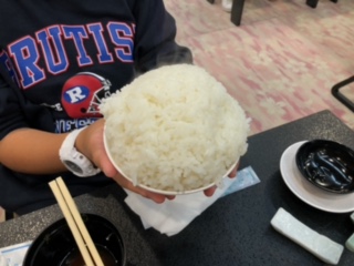 6年生のみんな、よく食べます。ごはんの先生盛りが大人気で、行列ができました。