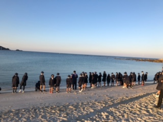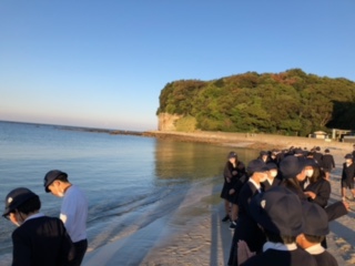 ? 梅ジュース作りへの意気込みを語り、朝の日差しの中で気持ちよく海と遊びました。さあ、今日のエネルギーのため、朝食へ!