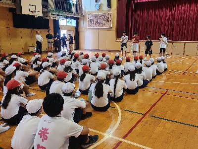 初めの会では、生徒会の代表が、温かく歓迎してくれました。6年生は、初めの方は少し緊張した様子でしたが、どの部も中学生が優しく接してくれて、少しずつ緊張がほぐれ、活動を楽しんでいました。