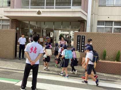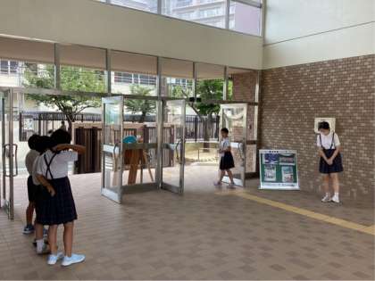 いつもより早くに登校するのは大変だと思いますが、代表委員の児童は玄関の両側に並んで、登校してくる子どもたちに、大きな声で朝の挨拶を行っていました。