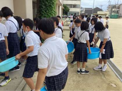 お互いに「まだ、ここ汚れているよ」とか「疲れるー」などワイワイ言い合いながら洗って、干して、6時間目に乾いた洗濯物を取り入れて家に持ち帰りました。