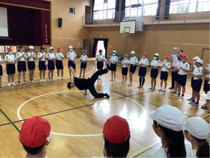 お若いお二人の偉大な足跡と軽快なトークに子どもたちは一瞬のうちにブレイクダンスの世界に引き込まれていました。