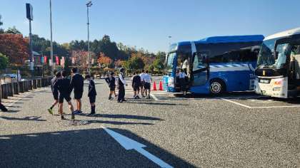 針テラスに到着し、トイレ休憩です。バスの中では、バスレク係がクイズを出して盛り上がっていました。トイレ休憩後は、音楽を聴きながら移動しています。道路は混雑なく順調に進んでいます。