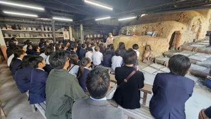 陶芸村での絵付を終えて、これから帰校します。予定より少し早めに陶芸村を出発しました。途中、京田辺PAで休憩をします。帰校が近づきましたらお知らせします。