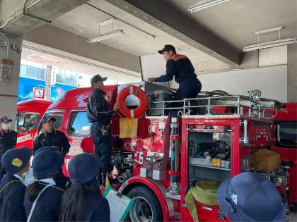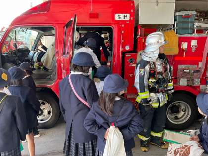3年 社会科見学 公開日 2023/12/04 更新日 2023/12/04 お知らせ 11月21日(火)消防署へ社会科見学に行ってきました。 間近に消防車や消防士の働く姿を見て、みんなあこがれの眼差しを向けていました。 また、火事の現場で使う道具や消火器を使う体験もできました。 火事の現場に真っ先に駆けつけてくれる、頼もしい消防士さんに感謝しつつ、自分たちも気を付けようと思いました。 いいね(0)