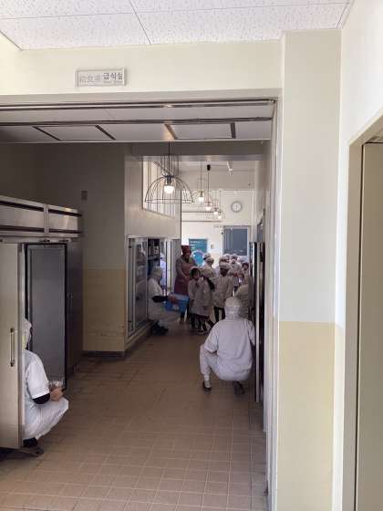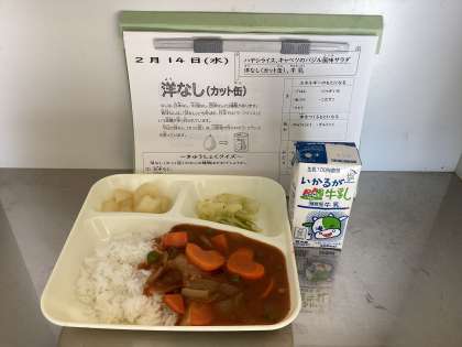 給食のハヤシライスはじゃがいも、人参、セロリ、グリンピースも入っていて具沢山で、とろみもあって白米にも合ってとても美味しくいただきました。