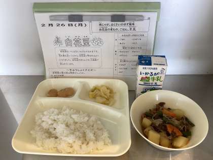 給食には豆類が多く登場します。今日の白花豆もその一つ。