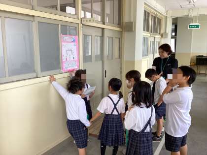 教室の前では2年生からの説明を聞き、シールをもらって次の教室へ。