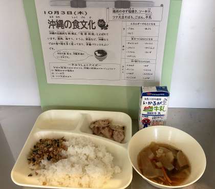 今月は22日にも「もずくと豚ひき肉のジューシー」の献立が入っており、沖縄の伝統料理「琉球料理」が給食にたくさん登場します。