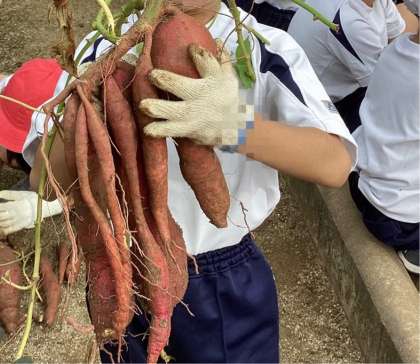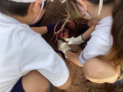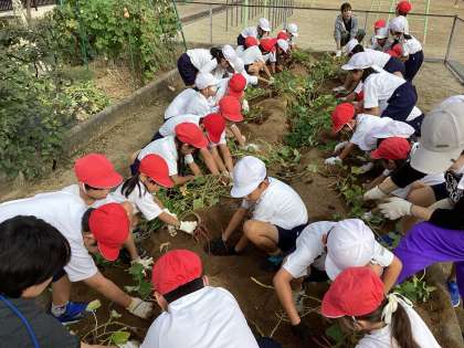 2年生 お芋ほり 公開日 2024/11/07 更新日 2024/11/07 お知らせ みんなが楽しみにしていた「お芋ほり」の日がやってきました。 みんなで植えた苗が大きくなって、大小様々なお芋ができました! 土からお芋が見えると「このお芋大きい!」「ここにもあるよ!」と大歓声があがります。 懸命に掘ってもなかなか抜けなくて、お芋ほりは大変〜 でもみんなで協力してたくさんのお芋を収穫することができました。 今は教室の前で美味しくなるのを待っています。 いいね(0)