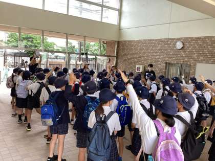 班の仲間で協力し合い、歴史を学ぶと同時に楽しい思い出をたくさん持ち帰って欲しいと思います。 8時40分ごろ元気に学校を出発しました。