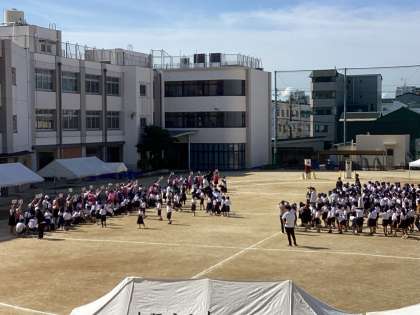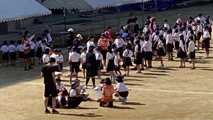 今朝は運動会前でもあるので、全校で校庭の石拾いを行いました。