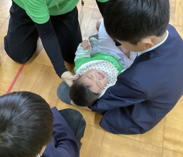 赤ちゃんとのふれあいを通して、自分がどれだけ大きくなったかに気づき、赤ちゃんの温かさと重みを実感していました。お母さんから赤ちゃんの成長の様子を聞くことで、自分も大切に育てられてきたことに気づけたようです。子どもたちが赤ちゃんに絵本を読み聞かせたり、お気に入りのおもちゃで一緒に遊ぶなどしてふれあいました。自分の命も他人の命も大切であり、育ててくれた人への感謝の気持ちをはぐくむ学びになりました。